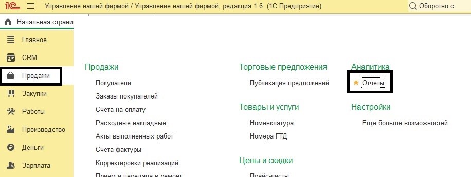 Понадобятся стандартные отчеты программы «1С:Управление нашей фирмой 8.3».