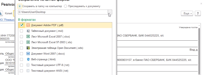 Предварительно выбрав формат, в котором мы будем делать сохранение. Это может быть документ word, либо excel, либо pdf, как в нашем случае.