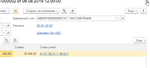 Программа автоматически пересчитывает. Цена подтягивается на основании той цены, которая была указана в последнем документе реализации этой номенклатуры. То есть программа запоминает последнее значение и предлагает использовать его дальше. Если цена поменялась к моменту создания документа, то мы можем вручную эту цену изменить, в нашем случае четыреста рублей.