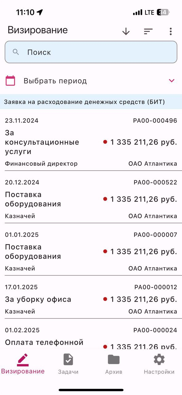 - Автоматическое формирование платежных документов на основании утвержденных заявок.