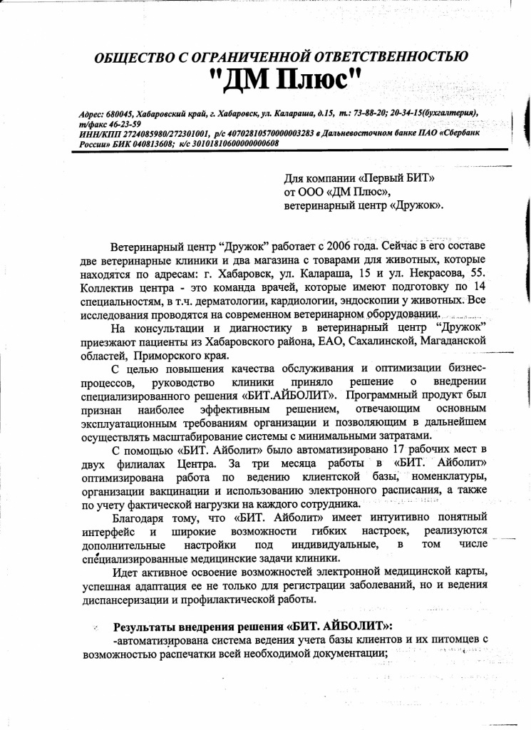 Ветцентр «Дружок» (ООО «ДМ Плюс») часть 1 |